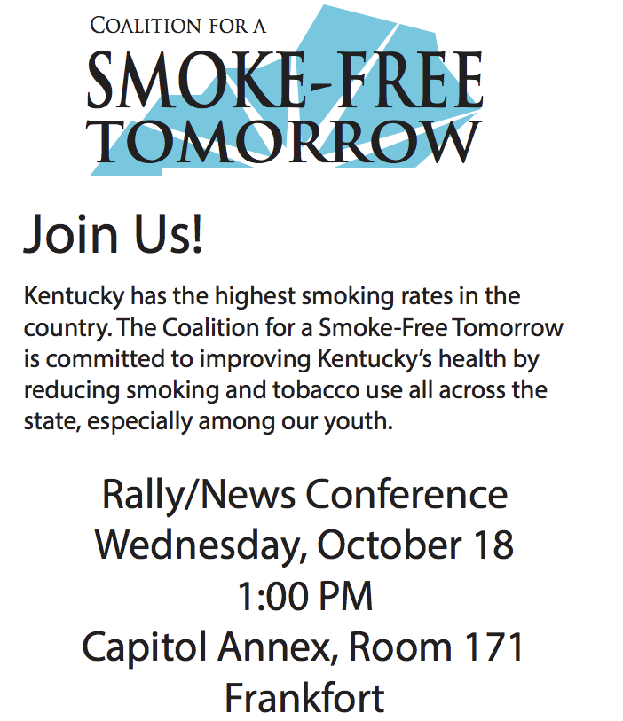Help Us Launch the Coalition for a Smoke-Free Tomorrow in Frankfort on October 18th at 1pm